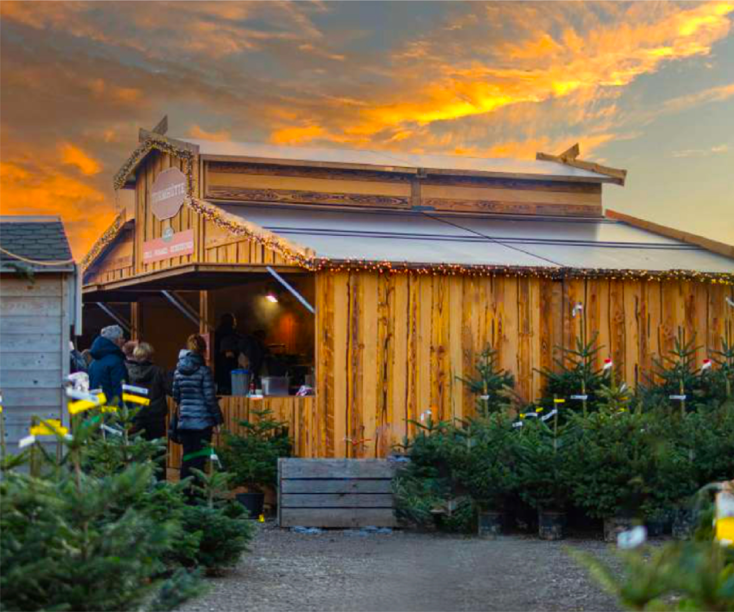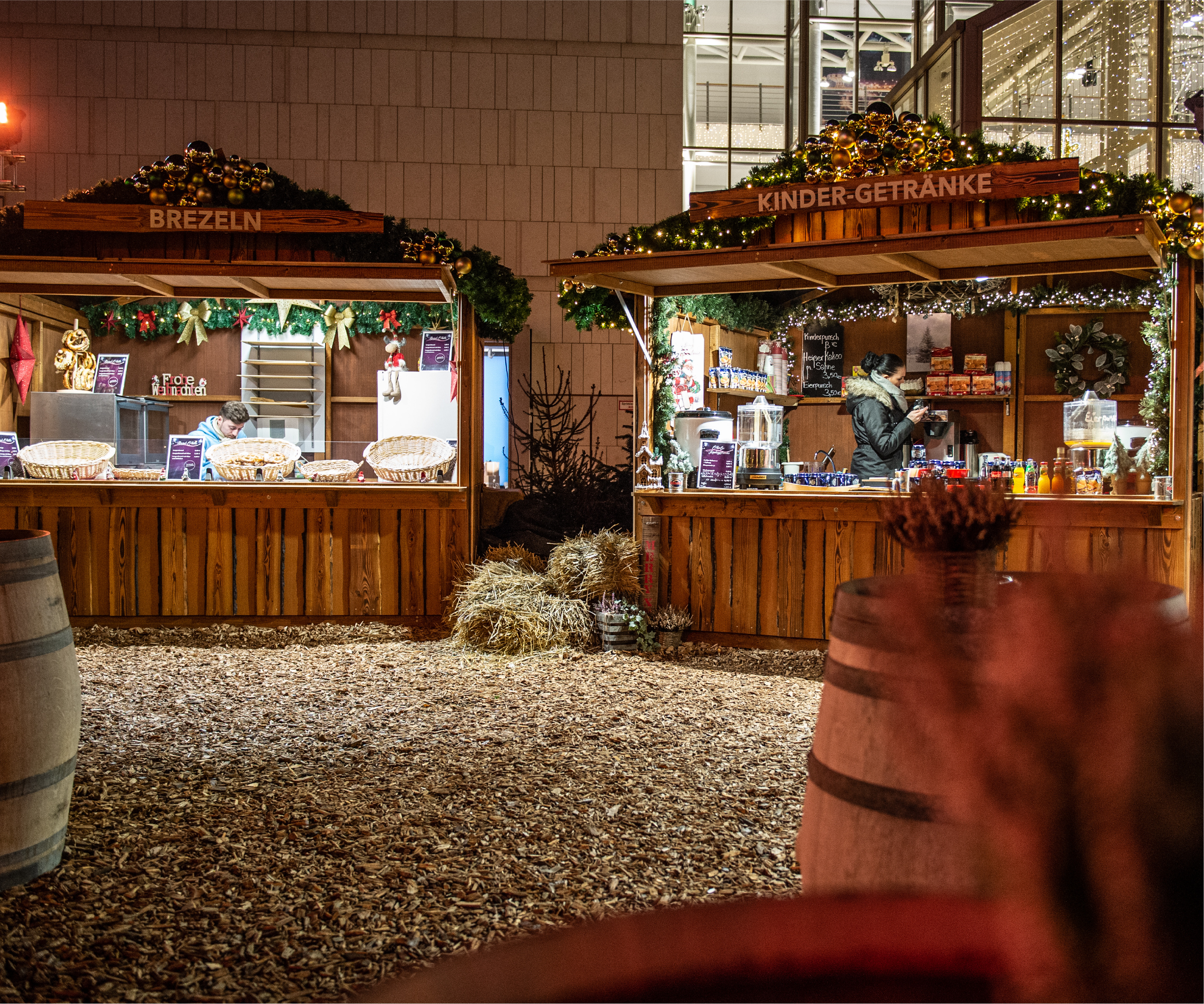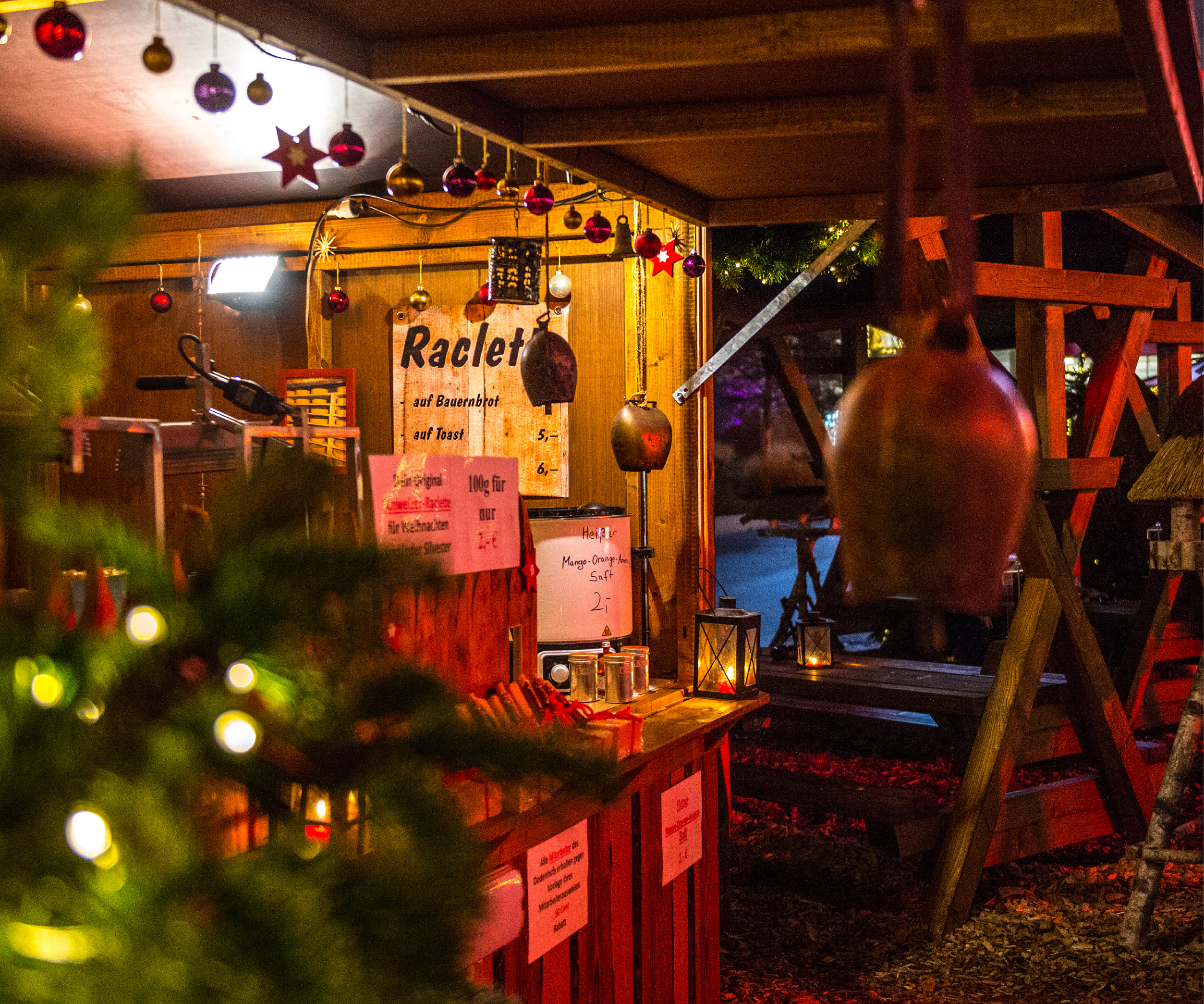 Der gemütliche komplett überdachte Hüttengarten auf dem Weihnachtsmarkt bietet den idealen Rahmen für Firmenevents und Gruppen bis zu 150 Personen.